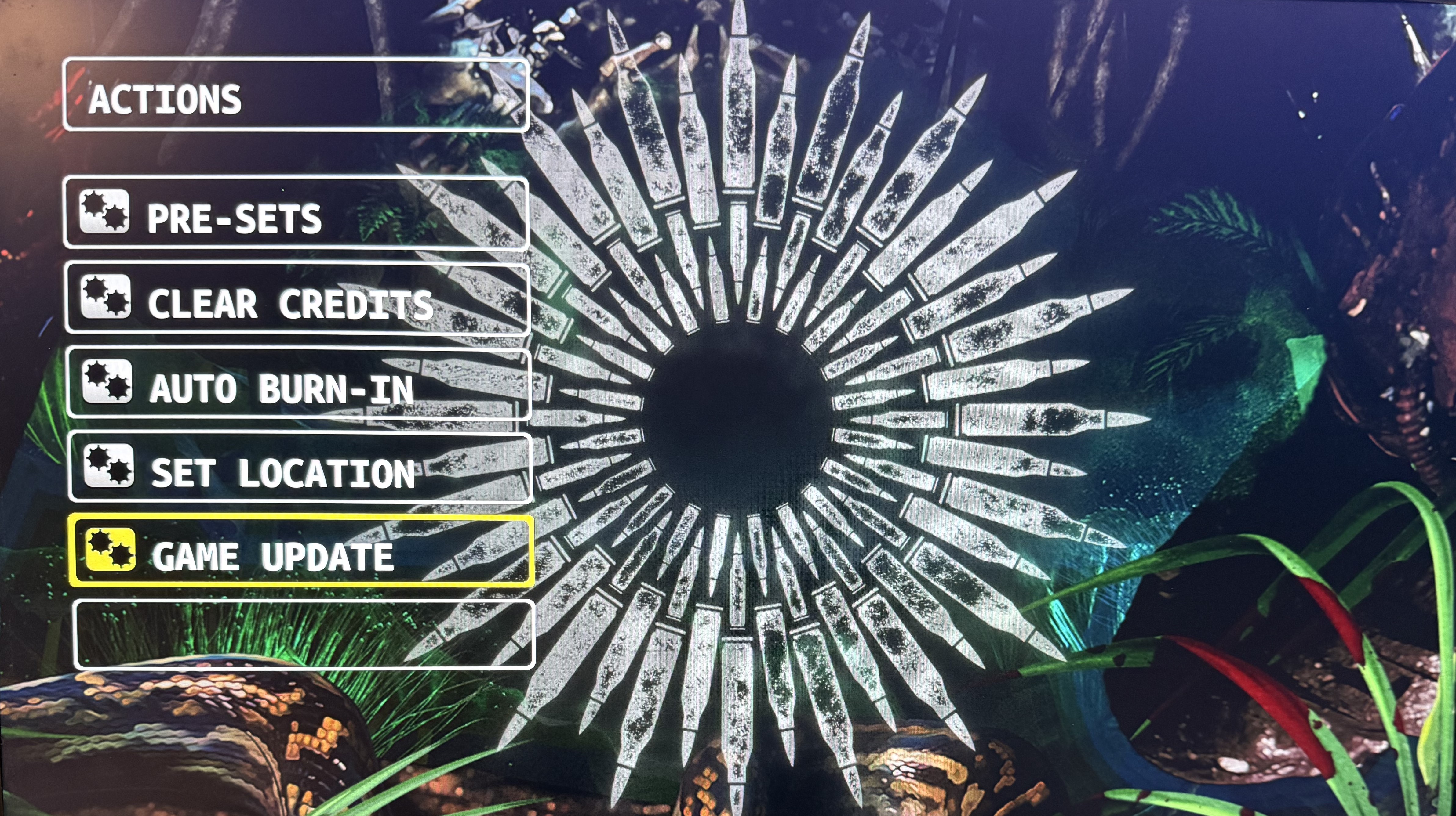 On the next screen you have to use the UP/DOWN buttons on the coin door panel to navigate to the next page to find GAME UPDATE. Select GAME UPDATE and press the ENTER button (on the the coin door panel).